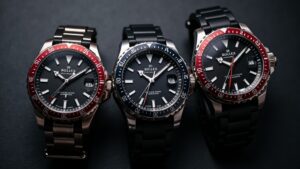 - GMT機能型:時針を独立操作できる2タイムゾーン表示。長距離渡航者や海外取引が多い人にとって実用性が高い機能です。